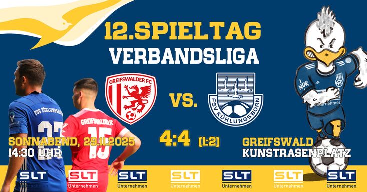 Unser FSV erkämpft sich ein 4:4 Unentschieden in bei der Reserve des Greifswalder FC .
